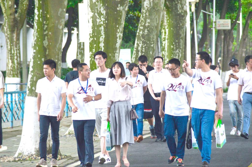 在志愿者的带领下,校友们参观了校园,参加了全民健身日活动,在欢歌笑语中重温了当年的校园生活。