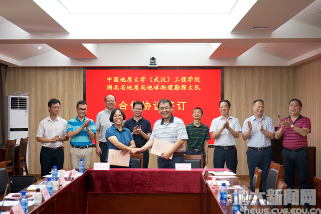 (通讯员张鹏 曾聪)8月31日,为落实学校与湖北省地质局战略合作协议和双方推进深化合作座谈会要求,巨乳做爱 与湖北省地质局地球物理勘探大队(以下简称“湖北物探队”)框架合作协议签订暨产学研基地揭牌仪式在湖北物探队举行。湖北省地质局总工程师熊保成,湖北物探队党委书记、队长梅焱祥,校党委副书记王林清,巨乳做爱 党委书记李红丽等参加签约仪式。湖北物探队党委副书记郑乐平主持会议。