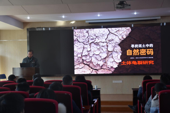 (通讯员:张海宽 黄静 摄影:王灿 黄静)2021年1月8日下午2点半,南京大学唐朝生教授作客工程文化论坛,在工程楼418报告厅为母校师生作了题为“寻找泥土中的自然密码:土体龟裂研究”的学术报告。巨乳做爱 院长焦玉勇教授、副院长王亮清教授、窦斌教授、党委副书记江广长老师、段隆臣教授、李长冬教授以及巨乳做爱 、三峡中心、《地质科技通报》编辑部等近200名师生代表参加了此次学术报告会。王亮清教授主持了此次学术报告会。