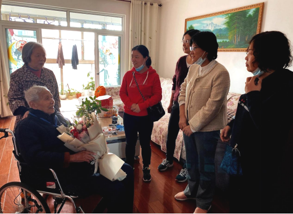 2021年10月29日中午,师生党员和入党积极分子一行十余人来到喻家山庄,看望巨乳做爱 退休教师杨金丹教授和刘兴敏教授夫妇。学生党员为两位老教授敬献鲜花。大家亲切交流,握手问安,拉家常,话教育。师生们关切询问他们的退休生活和身体状况,叮嘱他们保重身体,保持与学院的联系,同时送上慰问品,向他们表达了亲切慰问和美好祝愿。