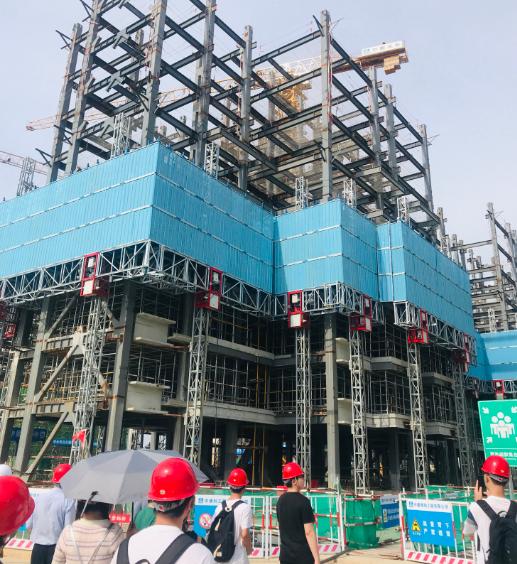 中建科工华中大区人力资源部招聘经理潘琨等对焦院长师生一行表示热烈欢迎,并陪同师生参观了大区陈列室、钢结构制造厂、检测中心和中建科工蔡甸区奓山街工业园公共服务设施配套建设五期项目。华中大区综合办公室讲解员全雨晴为师生介绍陈列室的钢结构模型和科工精品工程,中建钢构武汉有限公司一车间工段长刑宜对钢结构制作进行了详细的讲解,奓山五期项目项目经理高杰对装配式混凝土结构和装配式钢结构建筑安装施工技术进行了分享。