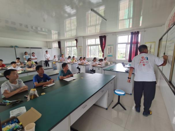 午餐过后,利用孩子们的午休时间,一行人在学校会议室同9位助学团成员召开座谈会。高晓东首先代表学校学院向辛勤工作的助学团成员们表示感谢,并送上学院精心准备的慰问物资。他详细询问了成员们的支教情况,以及在学习、工作和生活中遇到的困难,并针对性提出解决方案。他强调,全体支教团成员要充分认识社会实践对个人成长的重大意义,主动将个人理想与国家需求相结合,将理论学习与社会实践相结合,当好“地大名片”,潜心教书育人,保障人身安全,高质量完成支教任务,希望所有同学通过支教活动度过一个难忘而充实的暑假,书写一段感恩祖国、回报社会的奉献故事,一段无愧时代、无愧青春的支教故事,一段值得铭记一生、无限回味的青春故事。