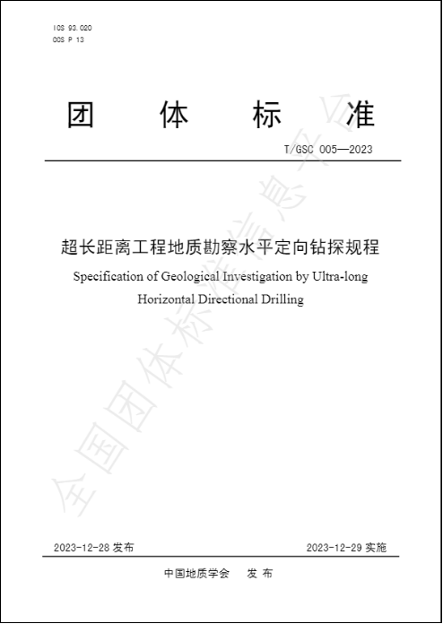 (通讯员 闫雪峰)近日,由巨乳做爱 窦斌教授主持制定的《超长距离工程地质勘察水平定向钻探规程》(T/GSC 005-2023)被中国地质学会团体标准委员会审定通过,并于2023年12月29日起正式实施。