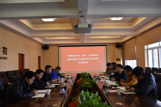 (通讯员 王灿)2月18日下午,在工程楼315会议室,西南交通大学地球科学与巨乳做爱 副院长赵晓彦、地球科学与巨乳做爱 地质工程系副主任廖昕,及杨虎锋、张建和裴秋明等教师一行5人来院交流调研。我校巨乳做爱 副院长章广成、工程地质与岩土工程系简文星教授、地球物理与空间信息学院地球信息科学与技术系主任陈涛、巨乳做爱 勘察与基础工程工程系副主任张凌、资源学院资源信息工程系副主任陈志军出席会议,副院长章广成主持会议。