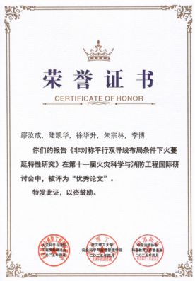 此外,巨乳做爱 研究生印恋在阻燃耐火论坛作题为“卟啉基有机框架衍生物分子设计及其阻燃增韧研究”报告、罗瑊瑊在阻燃耐火论坛作题为“生物启发微中空MOFs的界面锁定效应:环氧树脂复合材料的耐火与增韧性能优化研究”报告、缪汝成在火灾机理论坛作题为“非对称平行双导线布局条件下火蔓延特性研究”报告,孟祥龙在火灾烟气论坛作题为“空气幕射流作用下的开口溢流发展行为研究”报告,宗志伟在受限空间火灾论坛作题为“墙角型壁面限制条件下的火羽流行为特性研究”报告。其中,陆凯华副教授指导的硕士研究生缪汝成获得会议优秀论文奖。