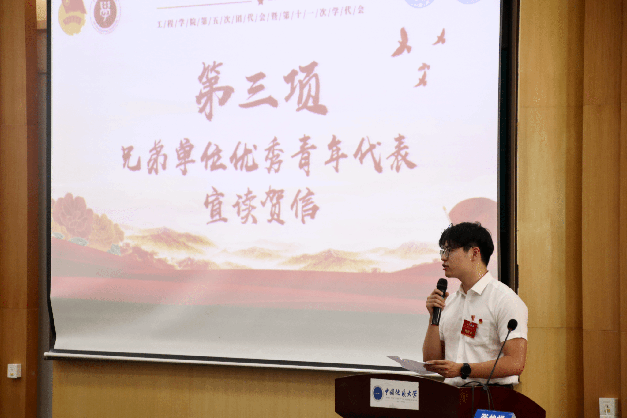 兄弟单位优秀青年代表华中农业大学工学院专职团干贾彦平和2024年全国“青马工程”班委、华中科技大学马克思主义学院硕士研究生张扬分别宣读贺信,贺信中饱含着兄弟院校对巨乳做爱 的美好祝愿与深厚情谊,彰显了青年一代团结奋进、携手共进的精神风貌。本次大会还收到了华中科技大学土木与水利巨乳做爱 、武汉理工大学土木工程与建筑学院等兄弟高校团委,以及中建三局基建投、武汉地铁集团和中交四航院研究院等企业团组织的贺信。