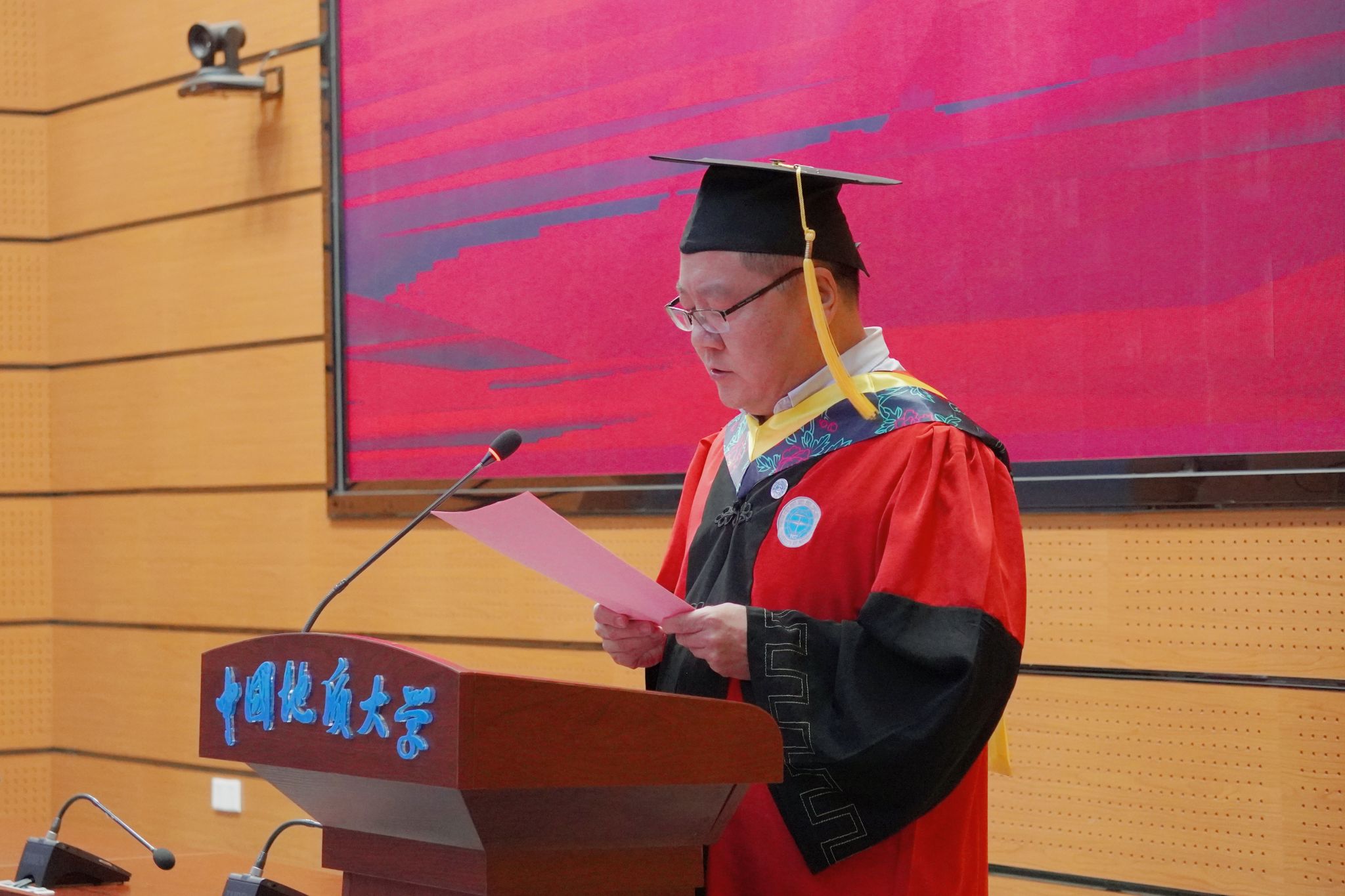 最后,全体师生齐声合唱校歌《勘探队员之歌》,在激昂的旋律中,毕业典礼圆满落幕。