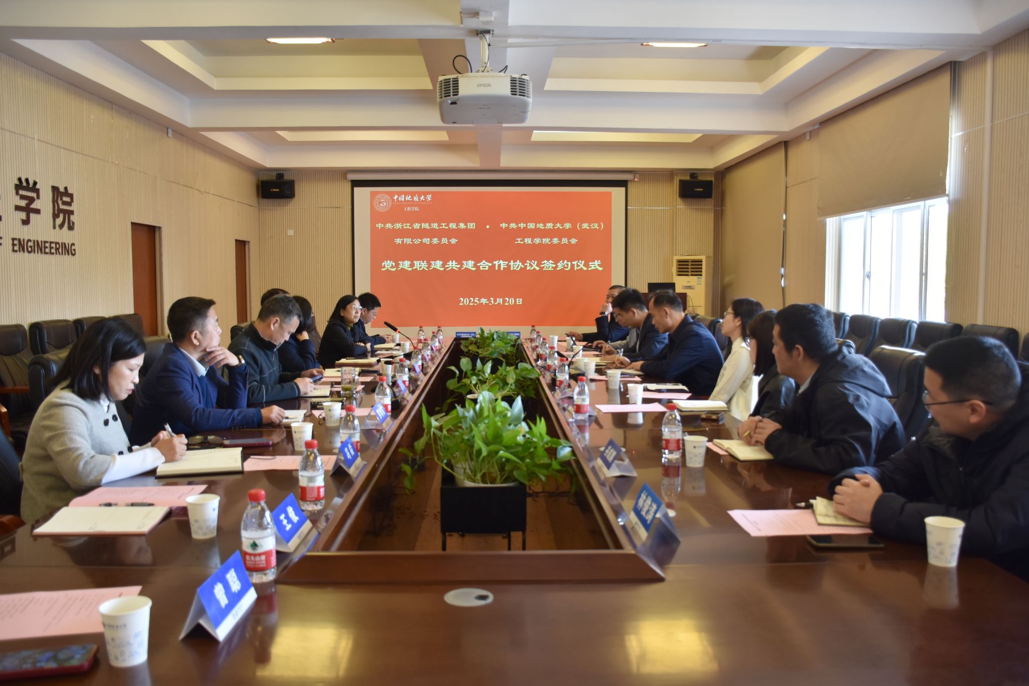 (通讯员 黄燕)为深入贯彻落实党的二十大和党的二十届三中全会精神,贯彻落实全国两会精神,进一步推动党建与业务深度融合,加强校企合作,实现资源共享、优势互补,2025年3月20日,巨乳做爱 与浙江省隧道工程集团有限公司在巨乳做爱 会议室就党建联建、人才培养、科研创新等方面开展座谈交流并签署党建联建共建合作协议。浙江省隧道工程集团有限公司党委书记、董事长、总经理李桂来,党委副书记、董事、工会主席谢常才,党委委员、总会计师张赛花,巨乳做爱 党委书记李红丽,党委副书记、院长王亮清,党委委员、副院长窦斌,副院长倪晓阳,学术副院长吴文兵,双方相关人员参加会议。李红丽主持会议。