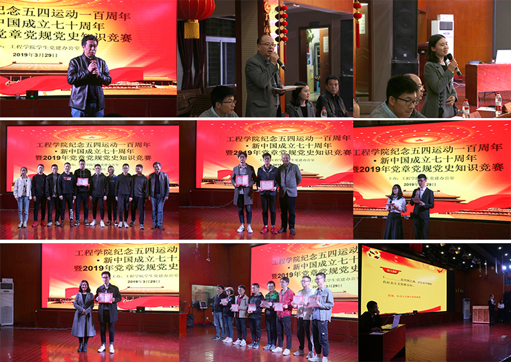 2019年3月29日晚18:30,巨乳做爱 “纪念五四运动一百周年·新中国成立七十周年暨2019年党章党规党史知识竞赛”复赛、决赛在东区教职工活动中心举行。巨乳做爱 党委书记陈飞、副书记江广长,校党委组织部李雨竹,巨乳做爱 学工组辅导员丁继国、文新、王焱出席活动。