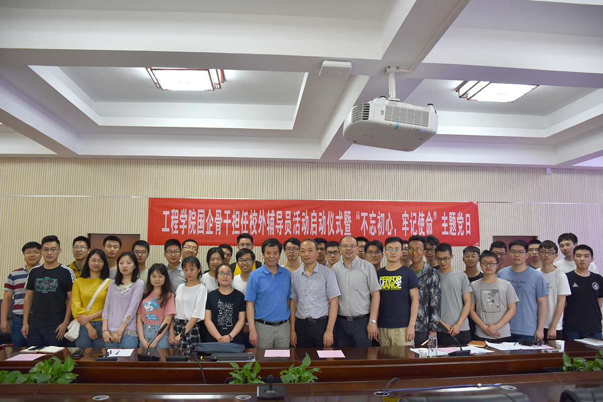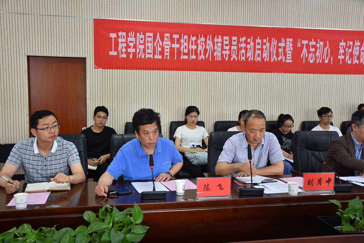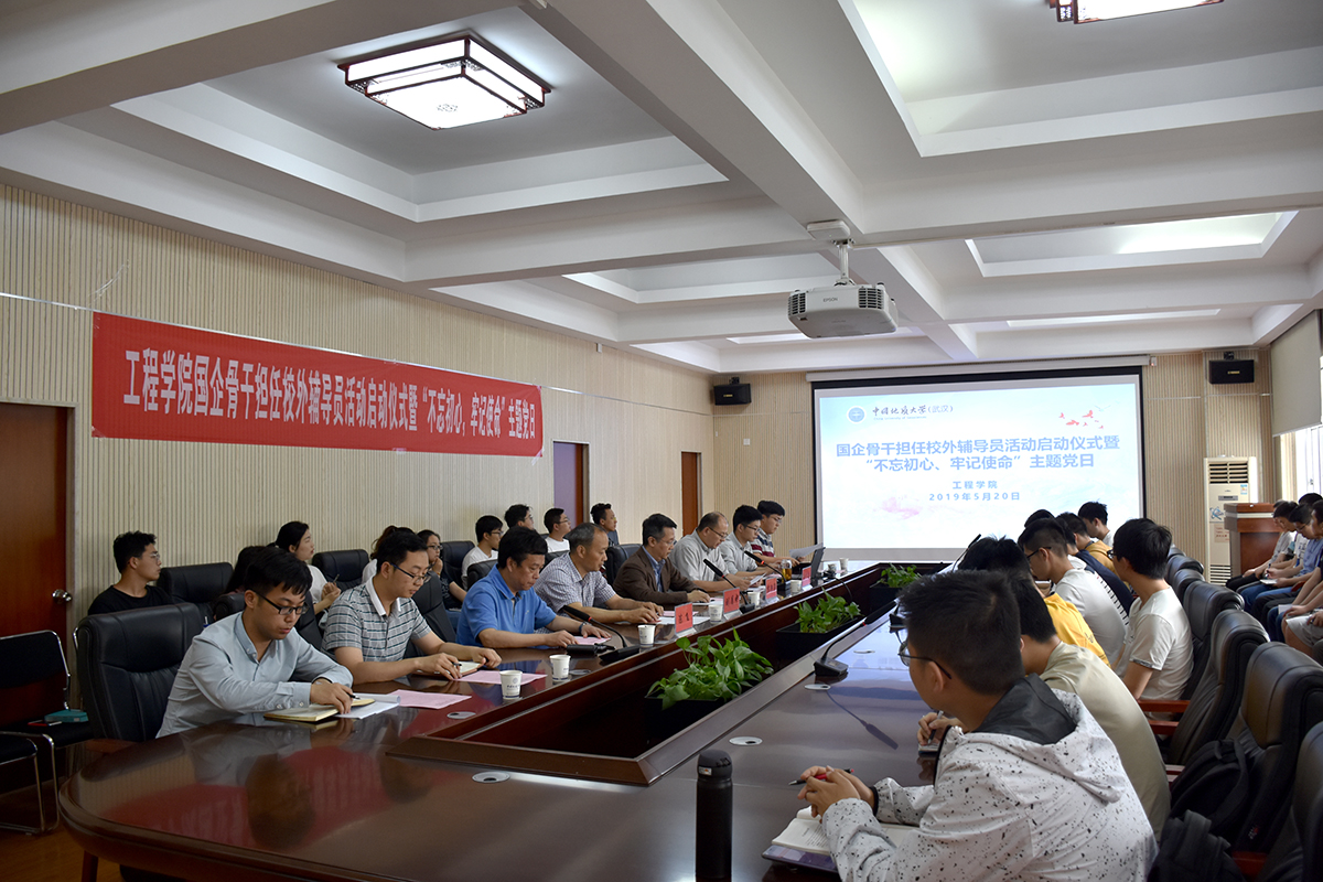 5月20日下午,巨乳做爱 国企骨干担任校外辅导员启动仪式暨“不忘初心,牢记使命”我与国企面对面主题党日在工程楼315报告厅成功举行。巨乳做爱 校外辅导员、中国黄金集团湖北三鑫金铜股份有限公司提升车间主任、党支部书记刘月中,学校学工处副处长苏洪涛,巨乳做爱 党委书记陈飞、副书记江广长、全体辅导员及四个学生党支部共40余人参加活动。
