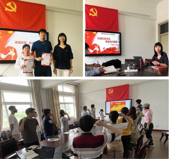 杨丹同志给全体党员上题为《弘扬红色文化,传承时代精神》党史主题党课。红色文化是中国革命建设时期以及改革开放时期形成的具有历史文化特性的产物,作为其重要精神内核,全心全意为人民服务的根本宗旨在我党历史发展中得以传承,从井冈山精神、延安精神、长征精神和西柏坡精神等革命精神,到社会主义核心价值观的综合体现,鼓励着党员干部以正确的政绩观,履行好职责和义务,为百姓谋福利,鼓励党员同志们抱着正确的价值观念,自觉、主动、自发地为广大人民服务!