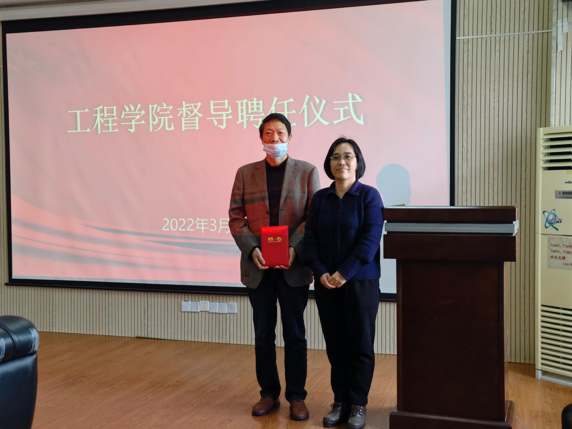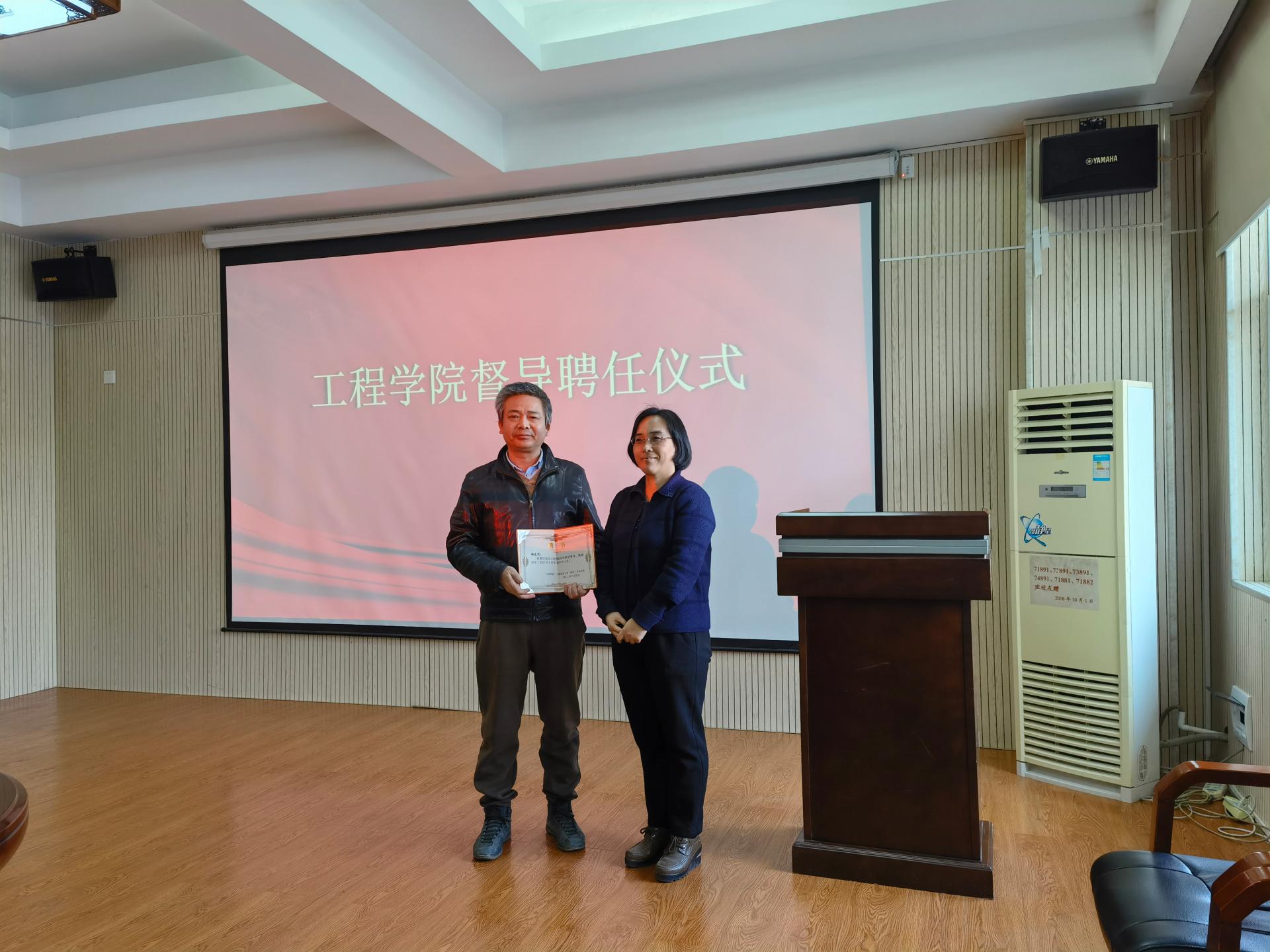 在工程楼315会议室举行本科教学督导聘任仪式。会议由副院长倪晓阳主持,学院党委书记李红丽、副院长倪晓阳、校聘督导员姚爱国、余宏明以及新一届学院教学督导组的各位专家出席了会议。