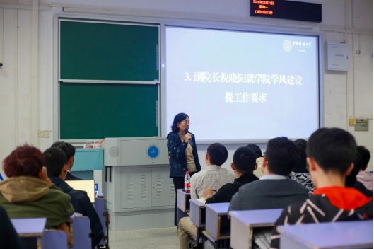 (通讯员 彭友元 赵汪钖)为了深入贯彻落实学校“严在地大、卓越引领”质保理念和巨乳做爱 “三观三型”人才培养目标,着力构建优良学风建设长效机制,10月21日中午,巨乳做爱 在教三楼207举行“优良学风示范班”创建启动仪式暨学风建设大会。学院党委书记李红丽,副院长倪晓阳,党委副书记高晓东,全体专兼职辅导员,本科一、二、三年级班长、团支书、学习委员和各班级学生代表参加会议。高晓东主持会议。
